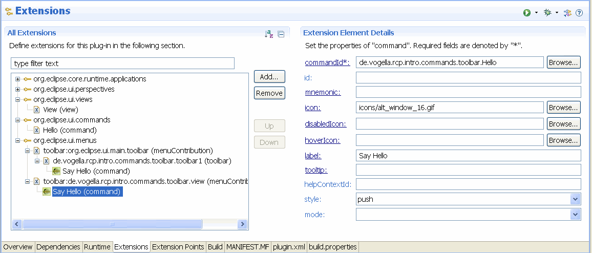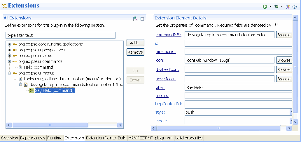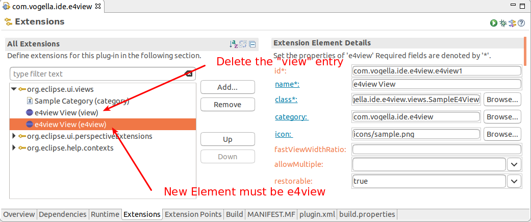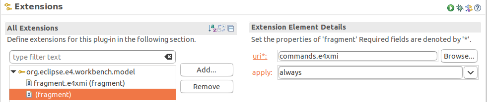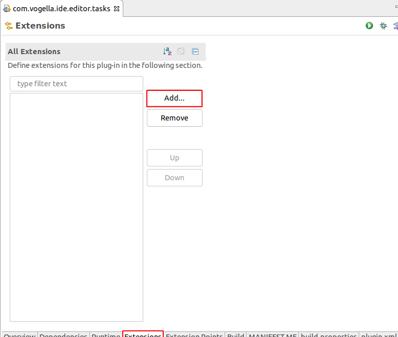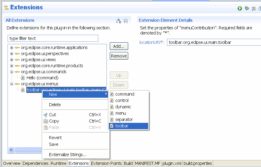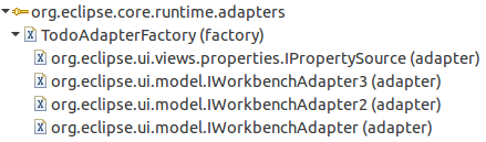 이제 TodoAdapterFactory는 WorkbenchAdapter객체들을 반환해야 하고, 또 org.eclipse.core.runtime.adapters 확장점(extension point)에 지정되여야 한다.