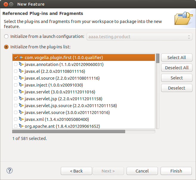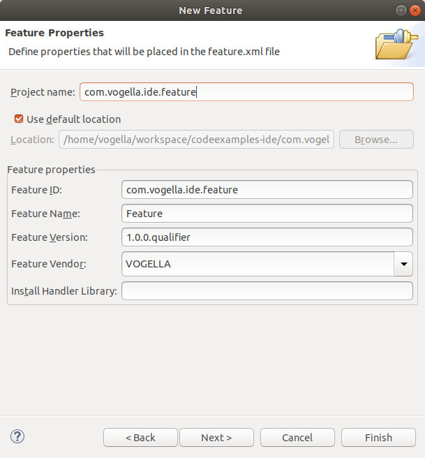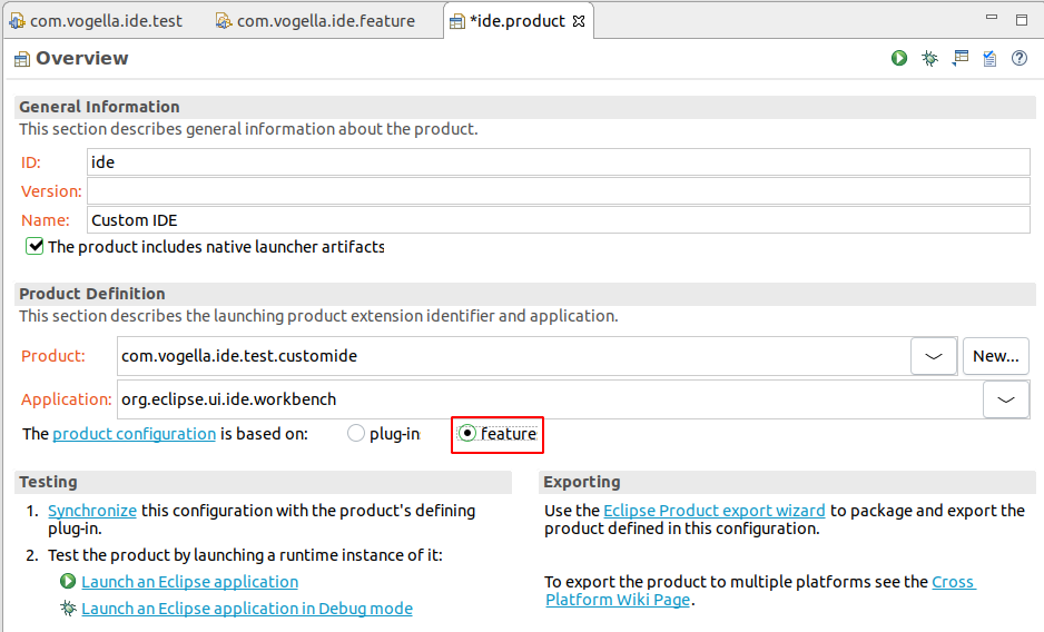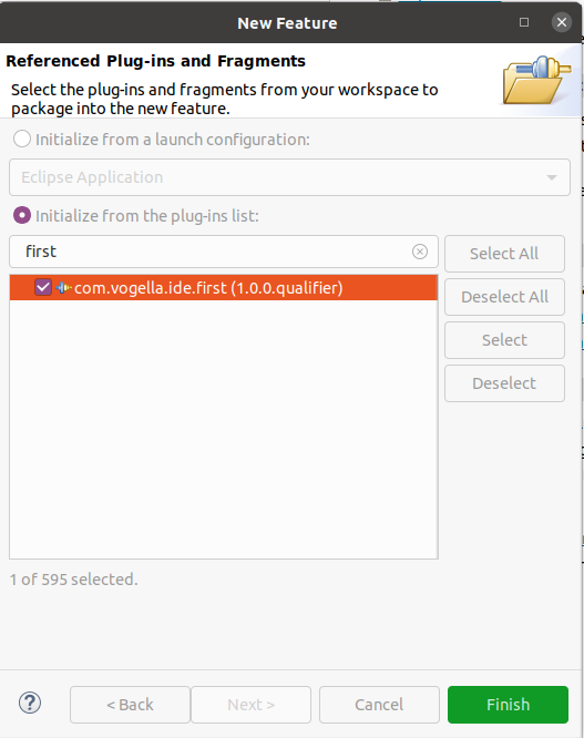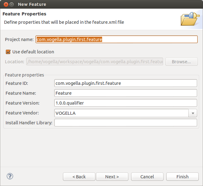 플러그인을 위한 feature 프로젝트를 생성하고 그 feature에 플러그인을 추가 할 수 있다. File >New >Other… >Plug-in Development >Feature Project를 통해서 feature 프로젝트를 생성한다.