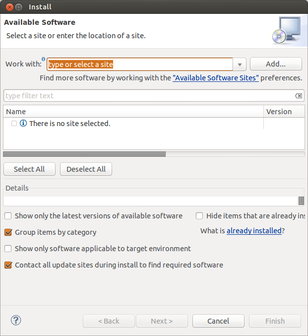 이클립스 IDE에 이 새 feature를 설치 하기 위해Help >Install New Software… 를 통해 이클립스 업데이트 관리자를 사용하라.