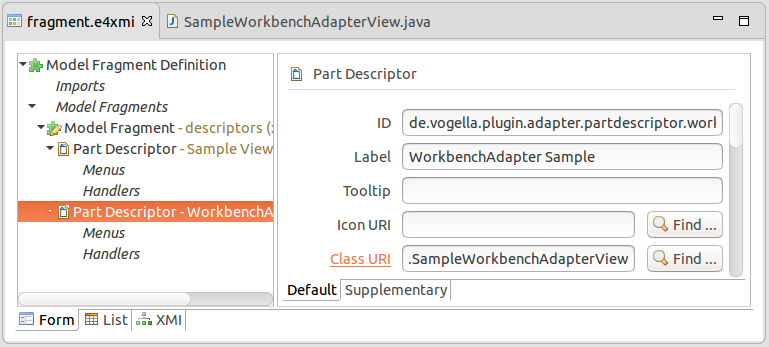 그것은 모델의 경령화 표현을 제공되게 되도록 되어 있다. 예를들면 이클립스 IDE 완전한 파일로 핸들링 하지 않고 파일을 식별하는 IEditorInput 객체를 사용한다.